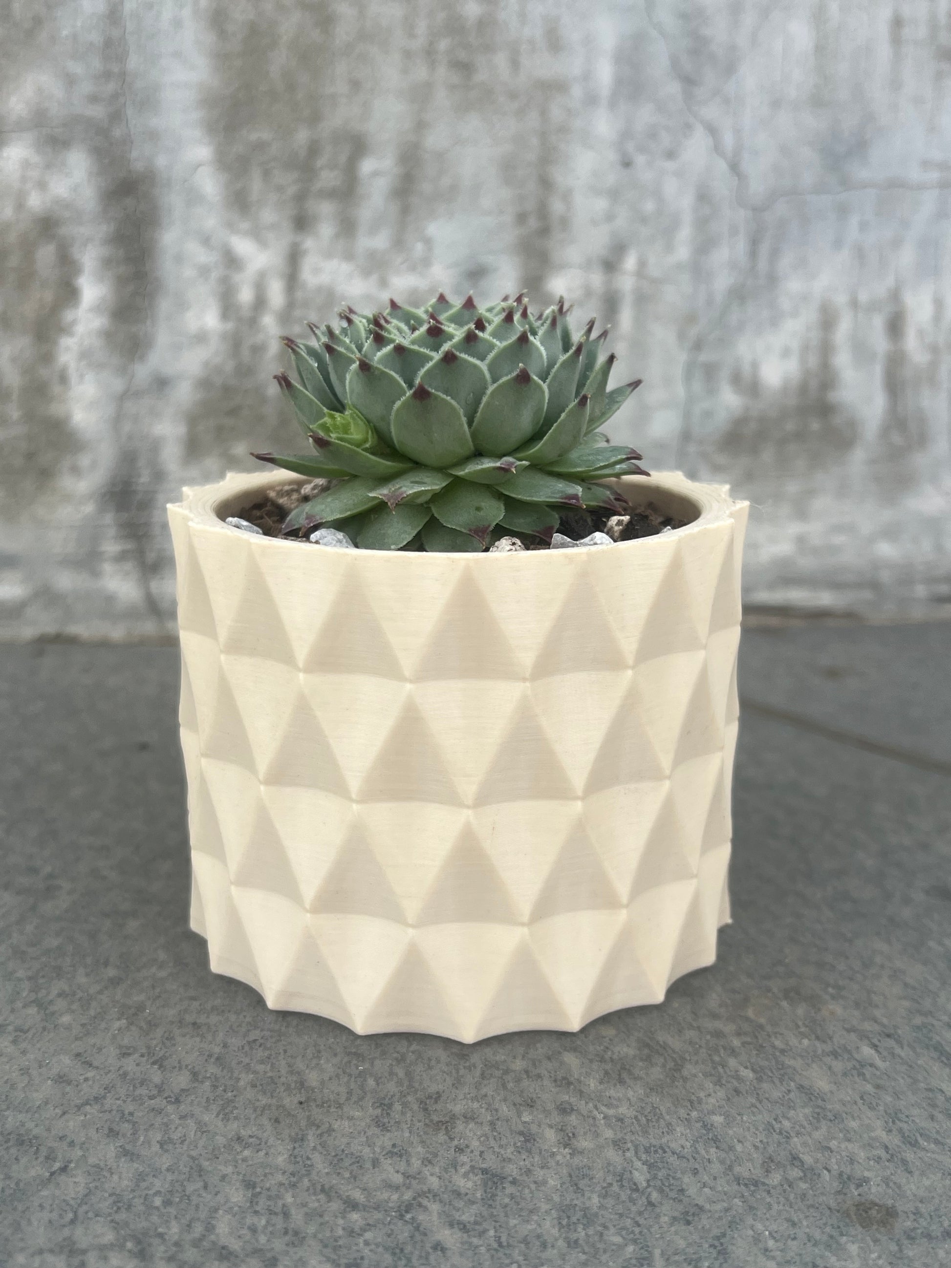 Descubre nuestra maceta minimalista impresa en 3D, perfecta para quienes buscan un toque moderno y elegante en su hogar u oficina. Con un diseño limpio, geométrico y sofisticado, esta maceta se adapta a cualquier estilo de decoración, desde escandinavo hasta industrial.
