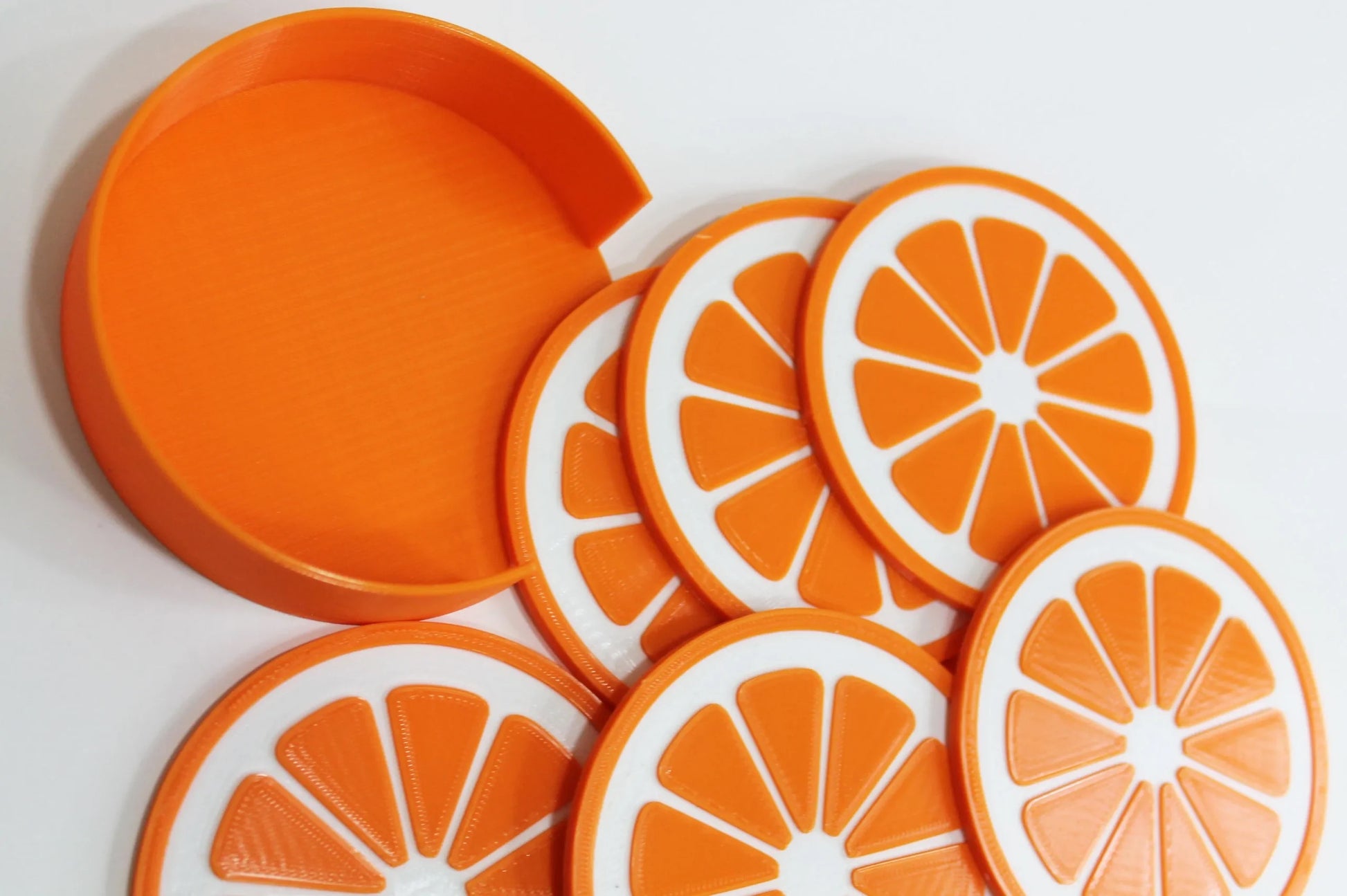 Posavasos Gajos de naranja es un posavasos con forma de rodaja de naranja. Llena de colorido tu mesa cuando sirvas tus bebidas. Este producto incluye un juego de 6 posavasos y 1 porta posavasos. Los colores son naranja y blanco. Tiene un diámetro de 10 cm y 4 mm de altura.